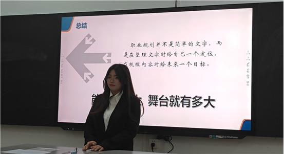 各位选手认真回答评委提出的问题,凸显清晰的逻辑思维,得到了评委老师的肯定,同时,评委老师也提出了选手的不足之处,让选手和同学们有了更为清晰的职业生涯规划认识。选手们大方的发言,自信的姿态,浓厚的热情,收获了热烈的掌声。