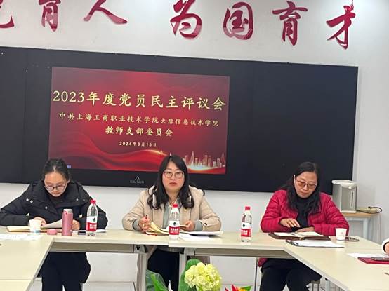 大唐信息技术学院教师党支部坚持以习近平新时代中国特色社会主义思想为指导,按照《中国共产党章程》《关于党内政治生活的若干准则》要求,于2024年3月15日12:30在17号楼504会议室举行了2023年度民主评议党员会。校党委副书记、副校长张中美莅临指导,大唐信息技术学院党总支书记王丽茹列席本次会议,会议由大唐信息技术学院教师党支部书记俞蝶琼主持。