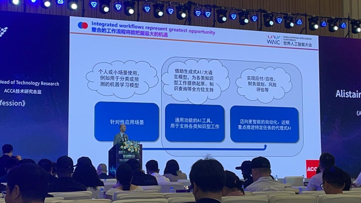 财政部会计司副司长王东的演讲从国家政策层面解读了智能财务发展的规范与引导,强调了人才培养和标准建设的重要性。ACCA技术研究总监Alistair Brisbourne则从全球视角出发,分享了《AI时代:行业变革与重塑》,分析了AI对财会行业岗位能力带来的根本性改变,为职业院校人才培养方向的调整提供了重要参考。