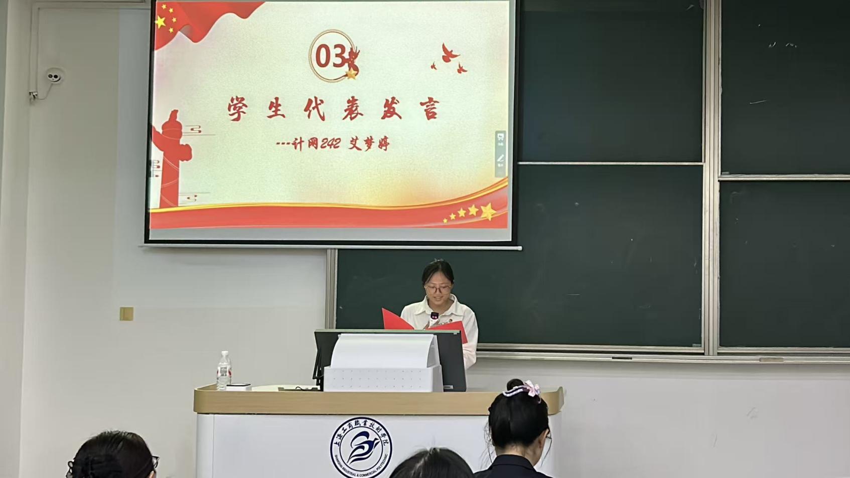 随后,计网242班的艾梦婷同学作为学生代表发言。她表达了对党组织培养的感激之情和积极向党组织靠拢的坚定决心,并表示将以饱满的热情和实际的行动来完成党课学习,争取早日成为一名合格的共产党员。