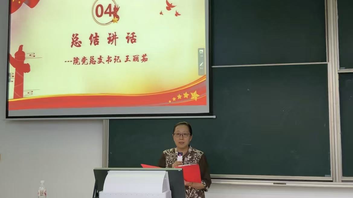 党总支书记王丽茹为开班仪式作总结讲话。王书记首先对参加本期党课的学员们表示祝贺,她强调了举办初级党课学习班的重要意义,并对学员们提出了殷切希望:一要坚定理想信念,端正入党动机;二要认真学习党的理论知识,提升政治素养;三要发挥模范带头作用,在学习和生活中当标杆、作表率。她鼓励学员们以此为新的起点,不懈奋斗,用实际行动向党组织交上一份满意的答卷。