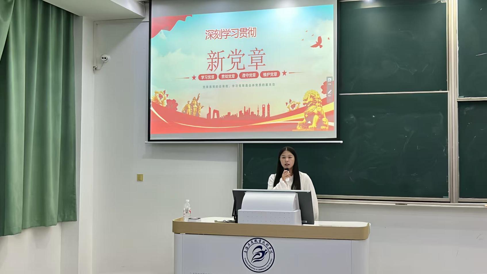 开班仪式结束后,党总支组织委员张晗为学员们讲授了题为“深刻学习贯彻新党章”的第一讲党课。张晗围绕新党章的修改背景、主要内容与重大意义进行了系统深入的解读,引导学员们原原本本、逐字逐句地学习党章,将党章的规定内化于心、外化于行,为接下来的党课学习奠定了坚实的理论基础。