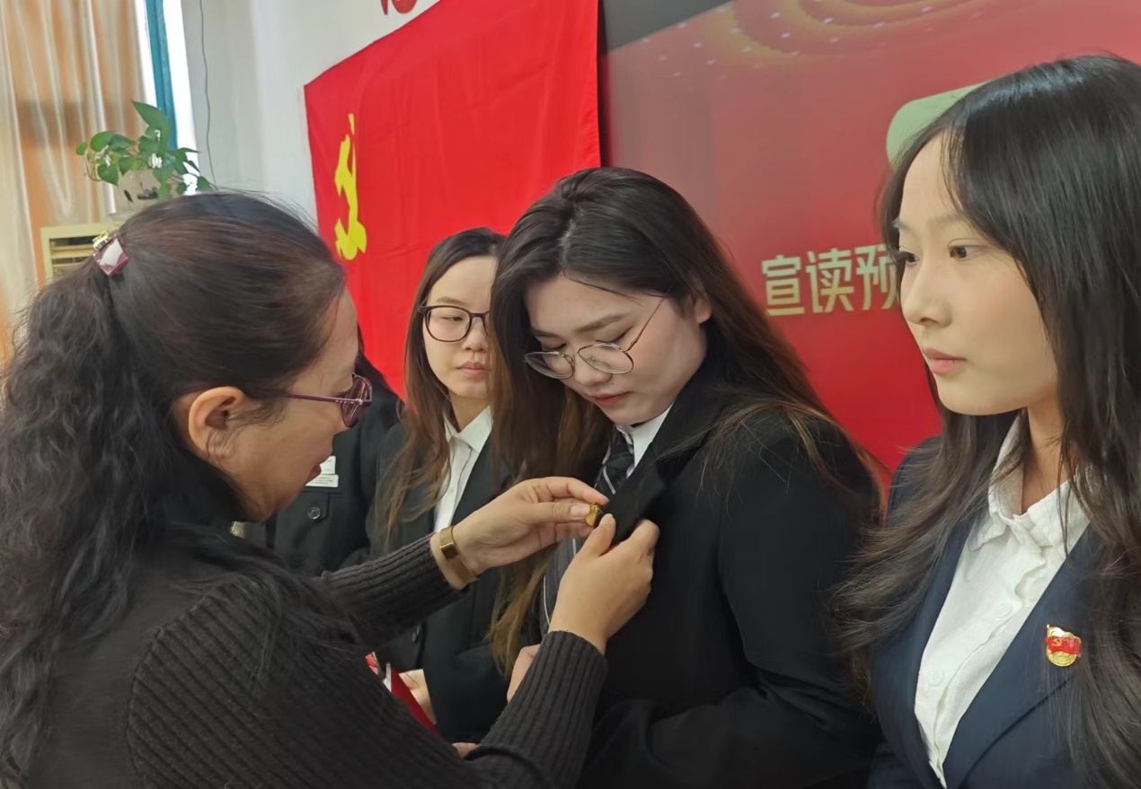 2025年12月26日下午13:30,大唐信息技术学院预备党员入党宣誓仪式在17号楼504室隆重举行,学院党总支书记王丽茹、副书记陈嘉玲、组织委员张晗、宣传委员冯彩霞出席,张昊、冯欣萍、刘娜娜、王嘉怡、李海燕、方贺、奚宸皓等7位预备党员参会。