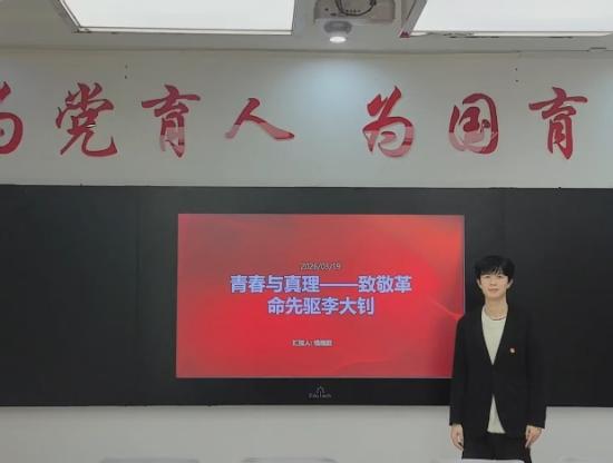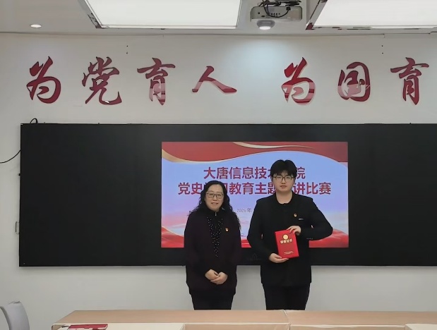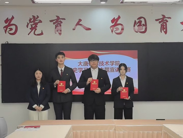 为深入贯彻习近平总书记关于党史学习教育的重要论述,传承红色基因、汲取奋进力量,2026年3月19日下午4时30分,大唐信息技术学院在17号楼504室举办党史学习教育主题宣讲比赛。本次比赛由学院党总支书记王丽茹、党总支副书记陈嘉玲、团委书记张晗、党总支宣传委员冯彩霞担任评委,现场见证了11名入党积极分子展示学习成果、绽放青春风采的精彩时刻。