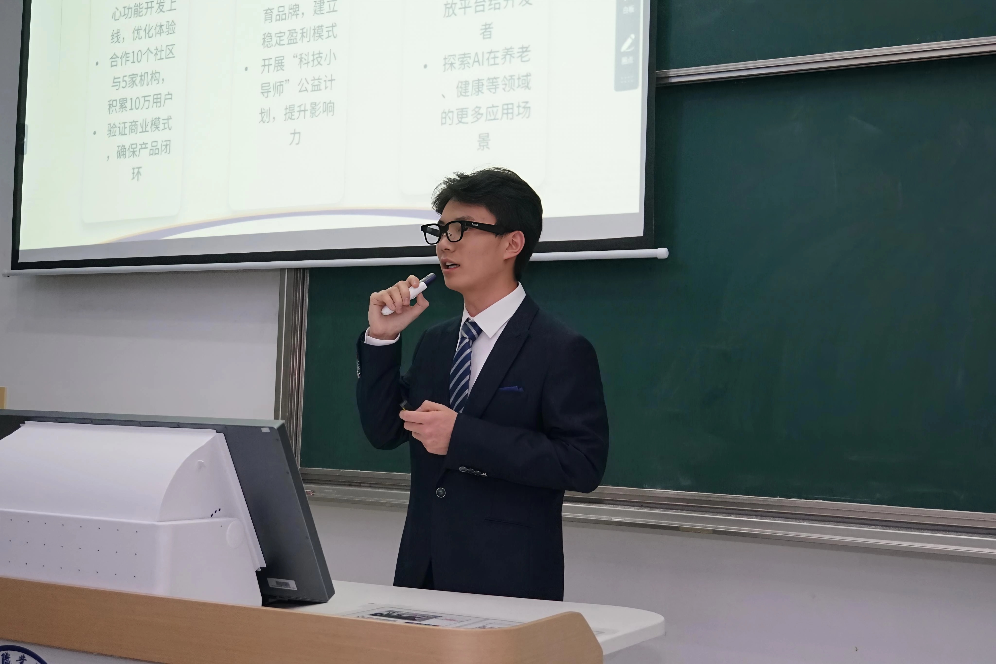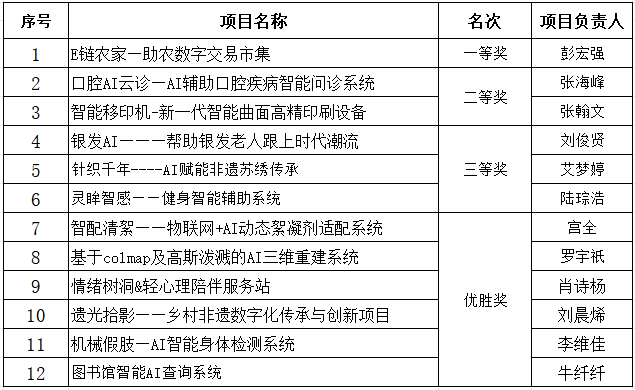 本届参赛项目紧扣人工智能、物联网、智慧医疗、助老服务、乡村振兴、非遗传承、绿色环保等热点方向,亮点突出、创意十足,充分展现了我院学子紧跟时代、学以致用的创新创业素养。大赛采用项目汇报+ 现场答辩的赛制,流程规范、组织有序。来自学院不同专业的 12 支参赛团队依次登台,围绕项目核心优势、技术创新、应用场景与社会价值展开精彩展示,面对评委的专业提问与点评,各团队从容应答、思路清晰,在交流中进一步明晰项目优化方向,收获成长与启发。经过激烈角逐,大赛最终评选出一等奖、二等奖、三等奖及优胜奖若干,获奖团队将继续打磨项目,全力冲刺校级总决赛。